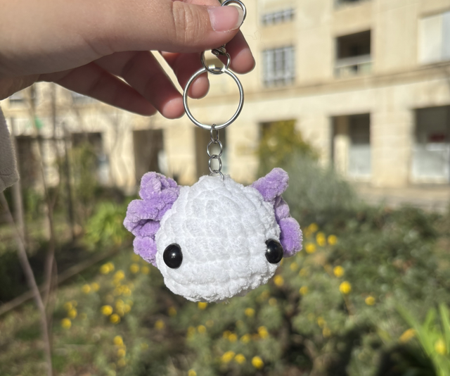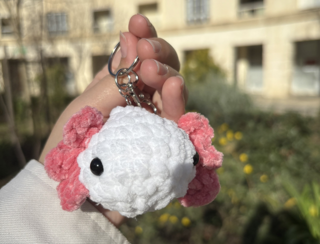 Un porte-clé axolotl tiré au hasard parmi 5 couleurs disponibles :